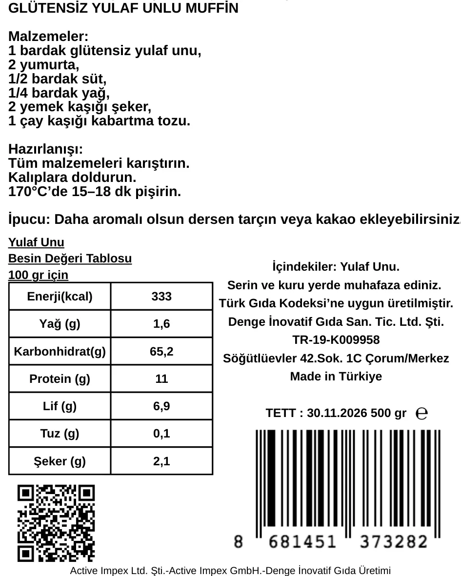 Denge Glütensiz’in Glütensiz Yulaf Unu, sağlıklı yaşam tarzını benimseyenler için mükemmel bir seçimdir. Doğal ve katkısız yapısıyla, lezzetli ve besleyici tarifler oluşturmanıza olanak tanır.